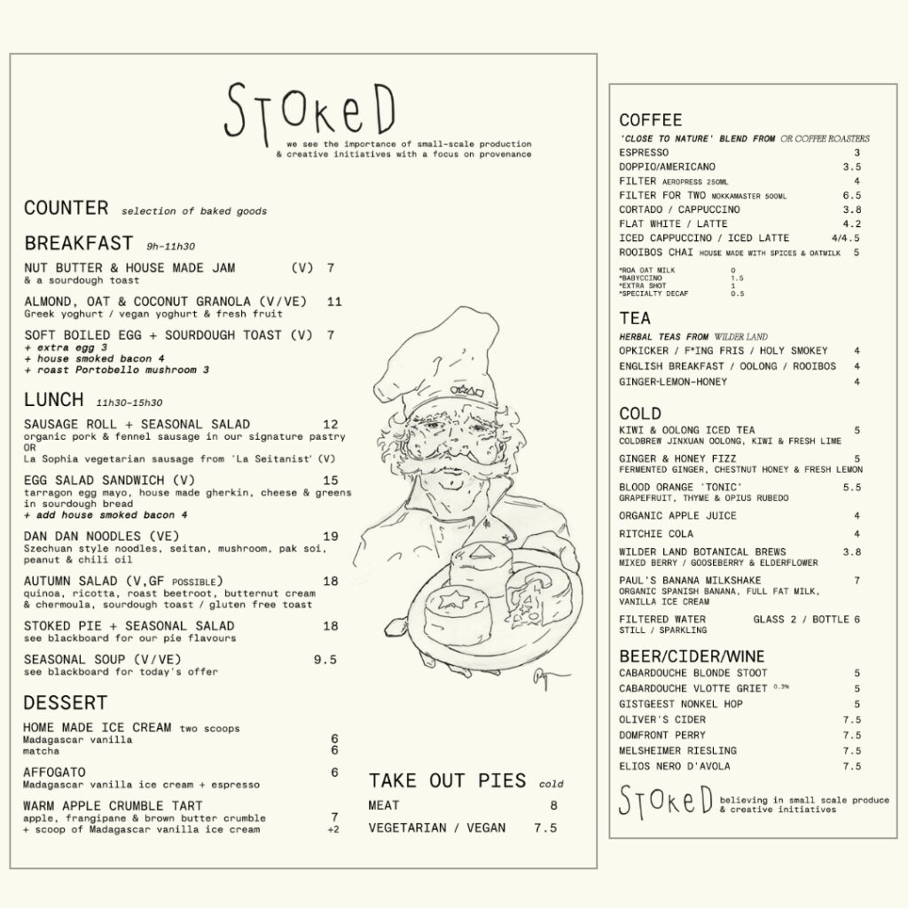 The menu at Stoked is ever-changing, shaped by the seasons and what our farmers have available. The menu you see is current, though it may differ slightly when you visit.